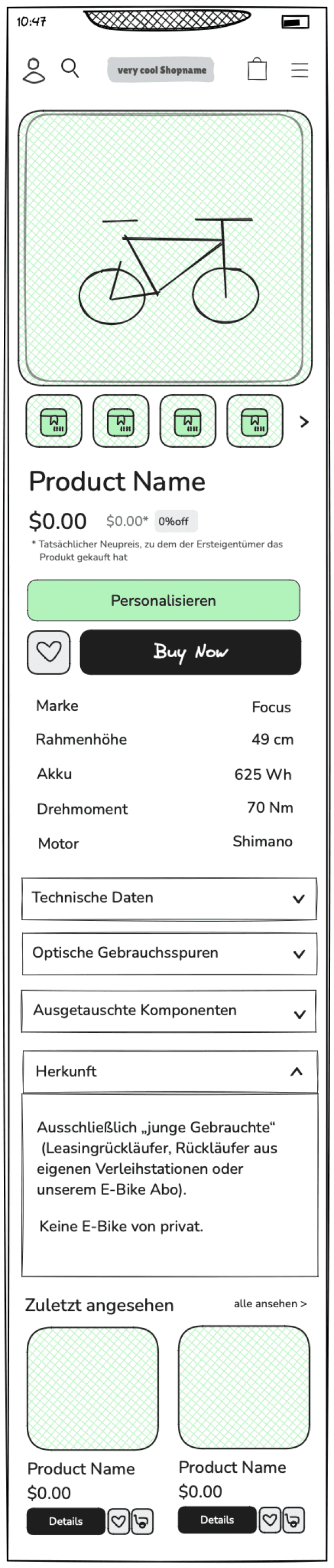 Als Online-Einkäufer möchte ich mich auf einer E-Commerce-Website leicht zurechtfinden, nach Produkten suchen und deren Details einsehen können, damit ich fundierte (und gegebenenfalls nachhaltige) Kaufentscheidungen treffen kann.